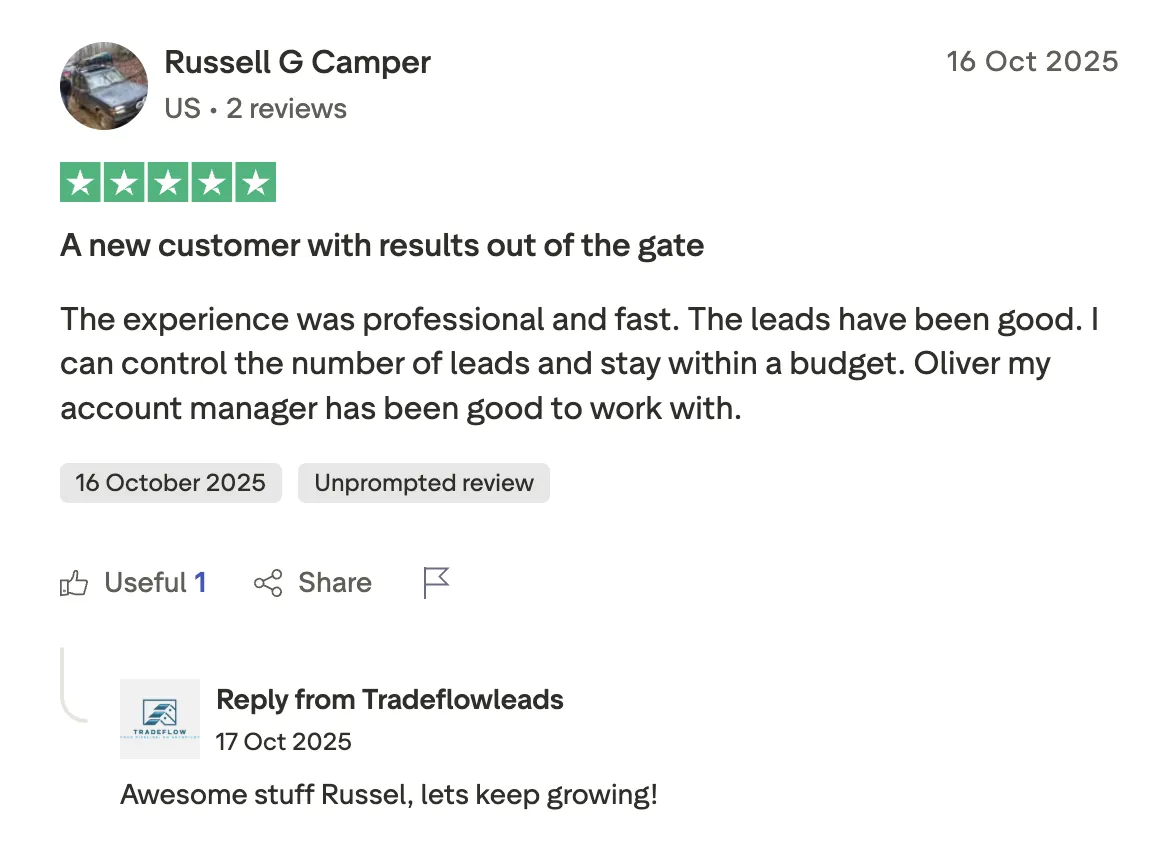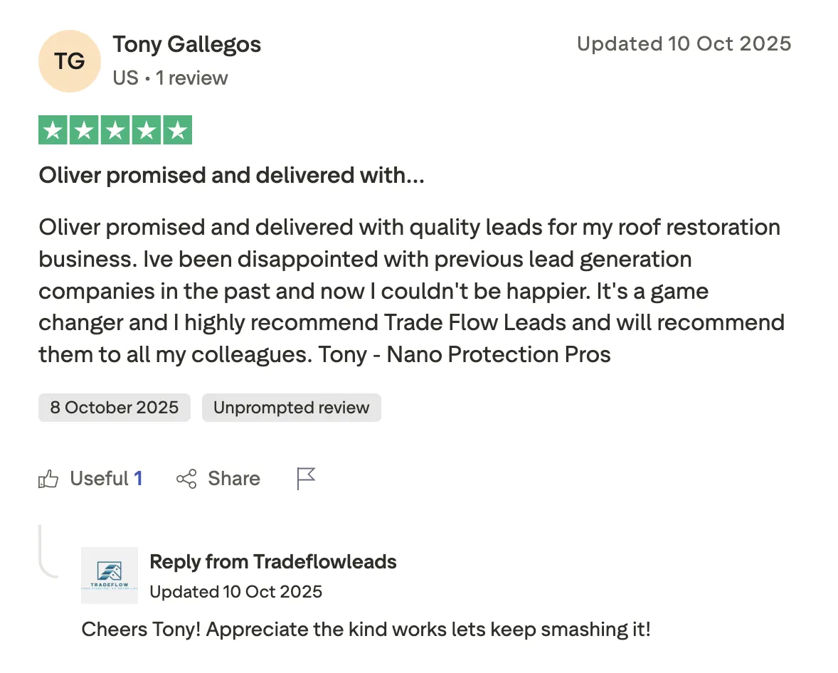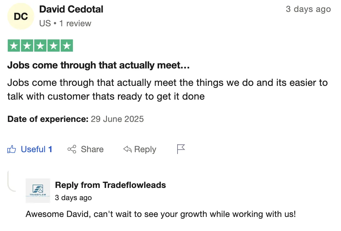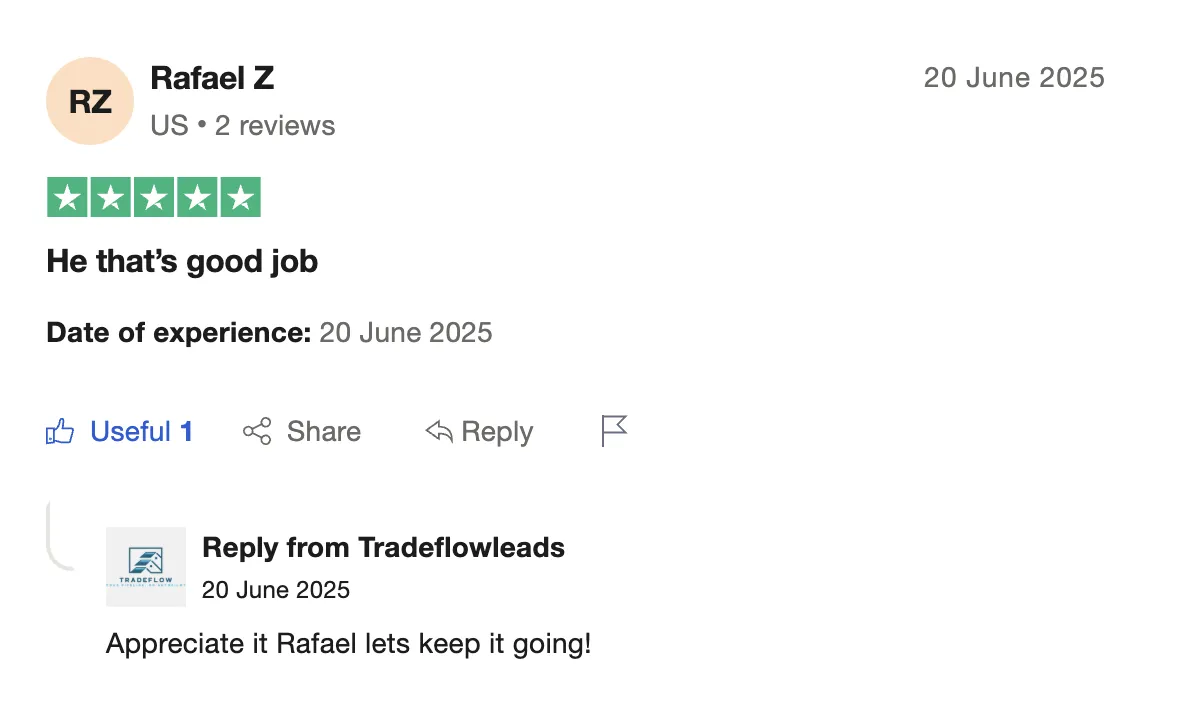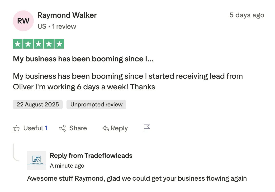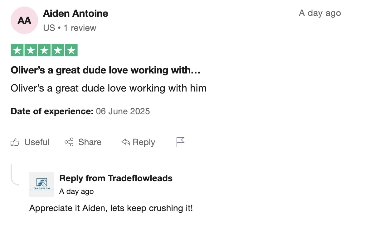 Raymond from a couple customers to 80% close rate: "When I first started with TradeFlow...I only had a couple of customers... I'm closing eighty percent of my leads, almost 100%. My business has really picked up since, getting with trade flow and meeting Oliver... So if you work with Tradeflow, they will get you the business. You your business will pick up
